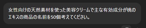 | 仮にサービスが:女性向けの天然素材を使った美容クリームで主な有効成分が桃のエキスだとしたら? |